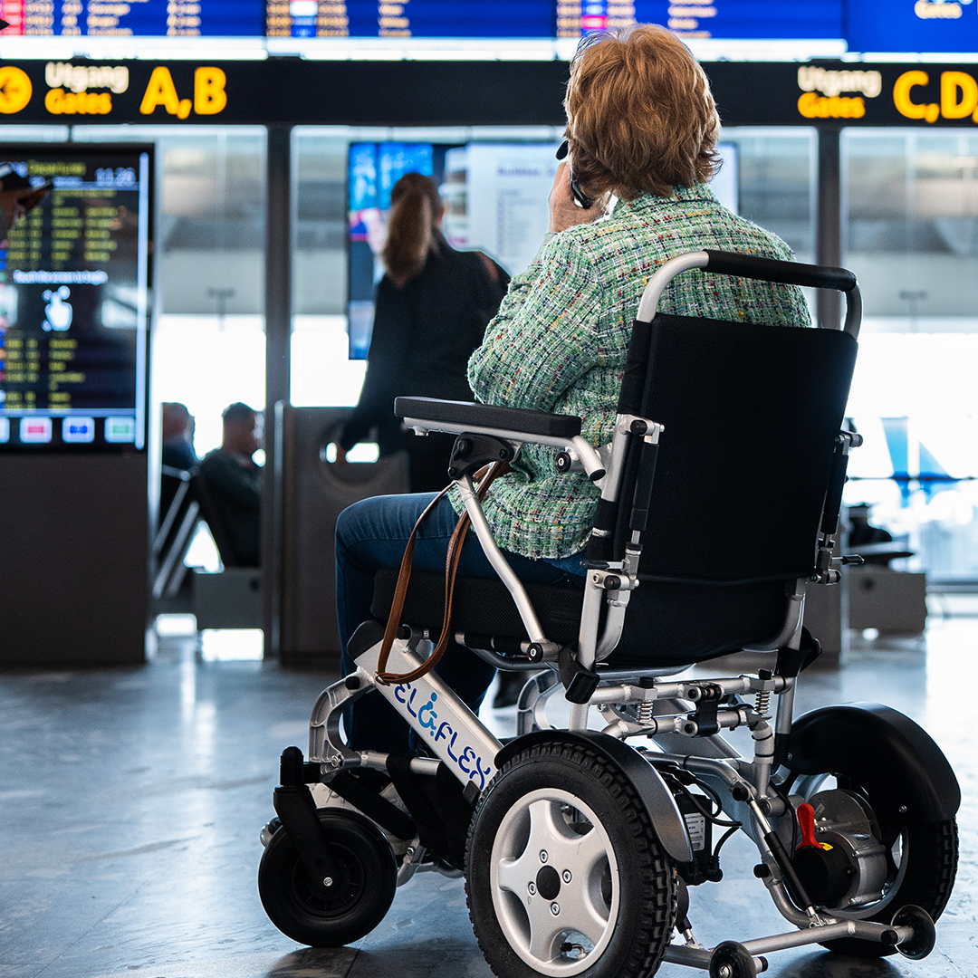 Yes, Eloflex power wheelchairs comply with all air travel requirements of the International Air Travel Association (IATA). Prepare for your trip by checking the detailed information we’ve compiled in our “Tips & Tricks” section. Here you’ll find everything you need to know about procedure, regulations with a bit of our own travel experiences added, to make travelling an effortless experience. Click here to find out how to take your Eloflex on a flight.