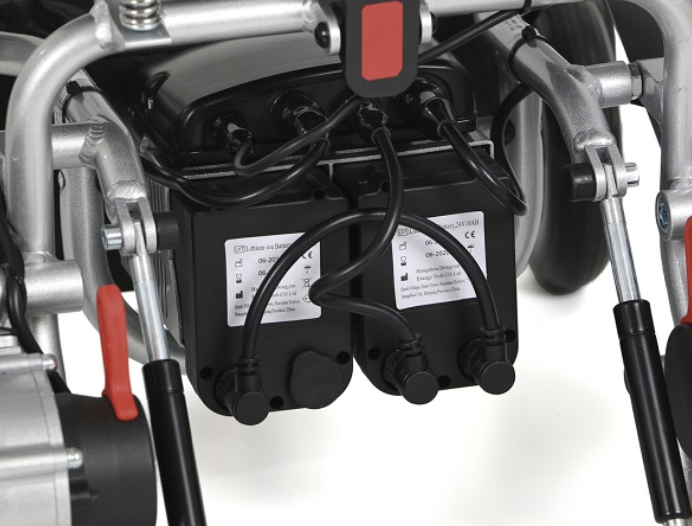 Eloflex is designed, engineered and manufactured using state-of-the-art technology. It’s highly efficient Lithium-Ion batteries are far superior to old lead batteries, both in terms of performance and weight. The powerful brushless and gearless direct drive motors are mounted directly on each wheel, making them both quieter and more efficient than the bulky motors used in traditional electric wheelchairs. Unlike many other brands, your Eloflex always comes with two batteries.