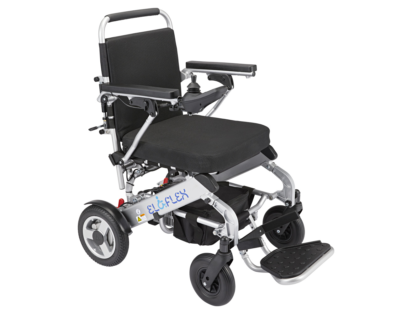 The secret lies in the fact that an Eloflex power wheelchair weighs up to 80% less than a standard electric wheelchair. What’s more, it can be folded up with a simple hand grip and collapsing motion.