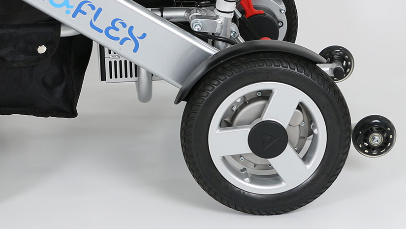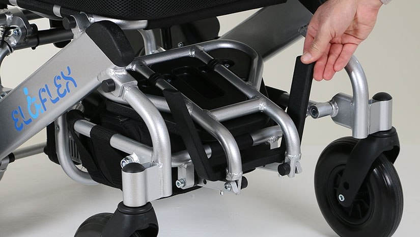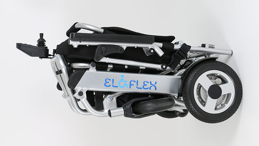 Eloflex L is a compact, no-nonsense power wheelchair for “no fuss” people on the move. It conveniently folds in seconds, making it easy to take with you when traveling by car or by plane.