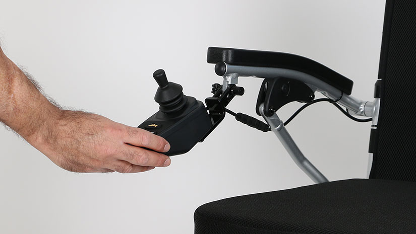 Our cleverly designed joystick mount brings you closer to the edge of tables, enhancing accessibility. The footrest conveniently folds beneath the seat, and large air-inflated rear wheels ensure a comfortable ride, even on uneven terrain. With dual batteries as standard and room for a third battery, your range extends up to 45 km, offering 7.5 hours of use on a single charge.