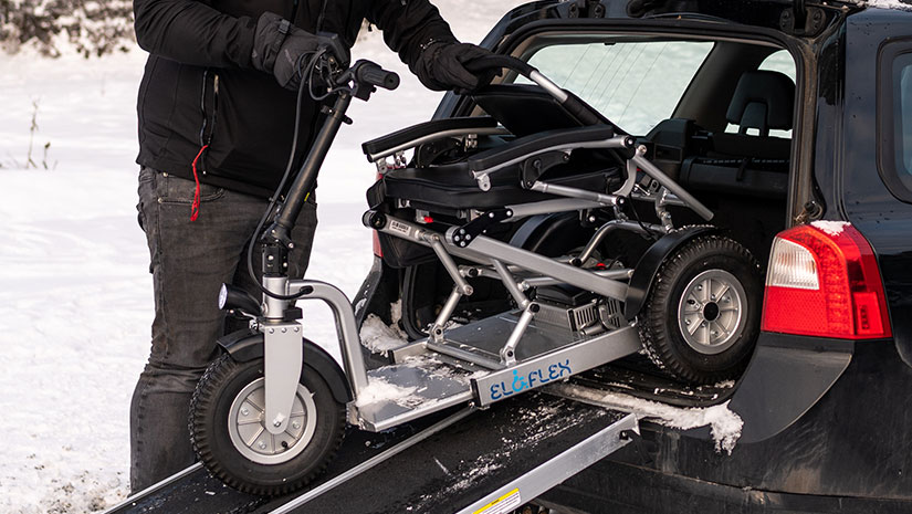Why not take your Eloflex S1 hybrid scooter on your next trip? Using ramps, you can simply load the scooter into a larger car – ¬ perfect for visiting friends and family, going on vacation, camping, RVing, and trips to the summer cottage. The batteries of the Eloflex S1 are flight-approved so you can easily jet away and bring your scooter with you.