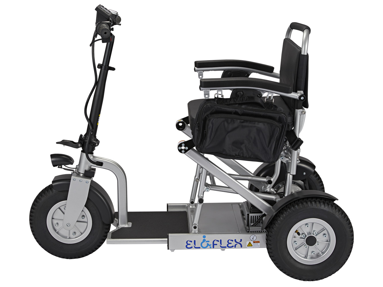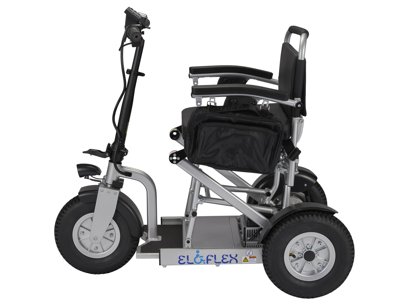 Much like our power wheelchairs, the Eloflex S1 hybrid scooter is foldable, making it easily to collapse and bring on your travels. At the press of a button, you can choose the scooter’s length (105-120 cm) to suit the driving environment. In the longer position, you can enjoy rapid, stable, and safe rides, even on rough terrains. In the shorter position, the scooter becomes more compact for nimbly navigating shops, restaurants and other indoor environments.