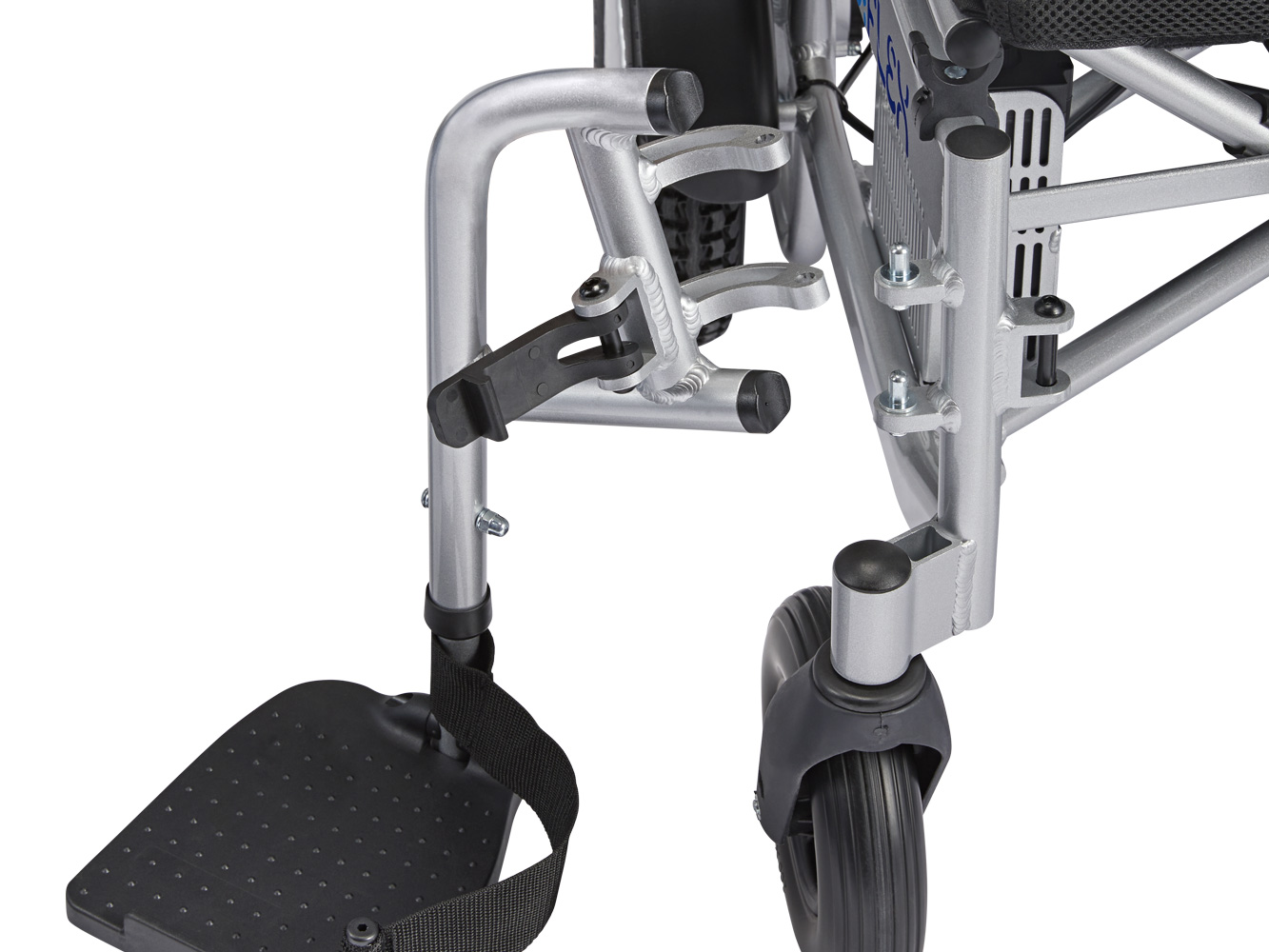 Model X comes equipped with standard folding footplates, allowing for flexibility in usage. The footrests can also be folded aside or removed, making it easier to get into and out of the chair. The adjustable backrest offers multiple angles, which is ideal for those who are sitting for long periods. spend longer periods of time in the chair. For added comfort, the armrests can be mounted at two different heights.
