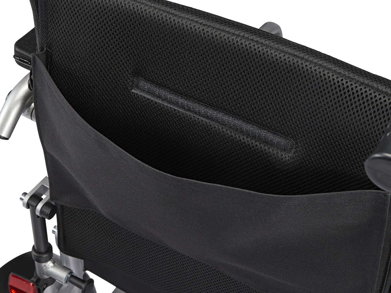 Located behind the backrest, the classic wheelchair steering handles make it easy for a family member or caregiver to push the chair manually. They also provide excellent support if users want to use their power wheelchair as a walker for short distances.